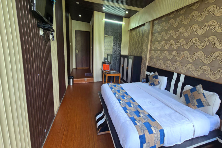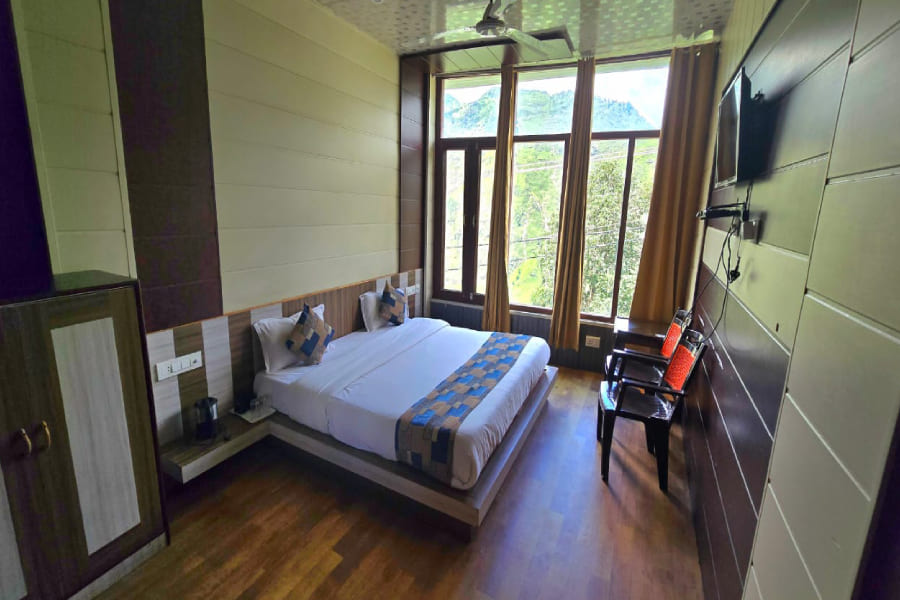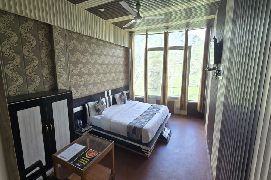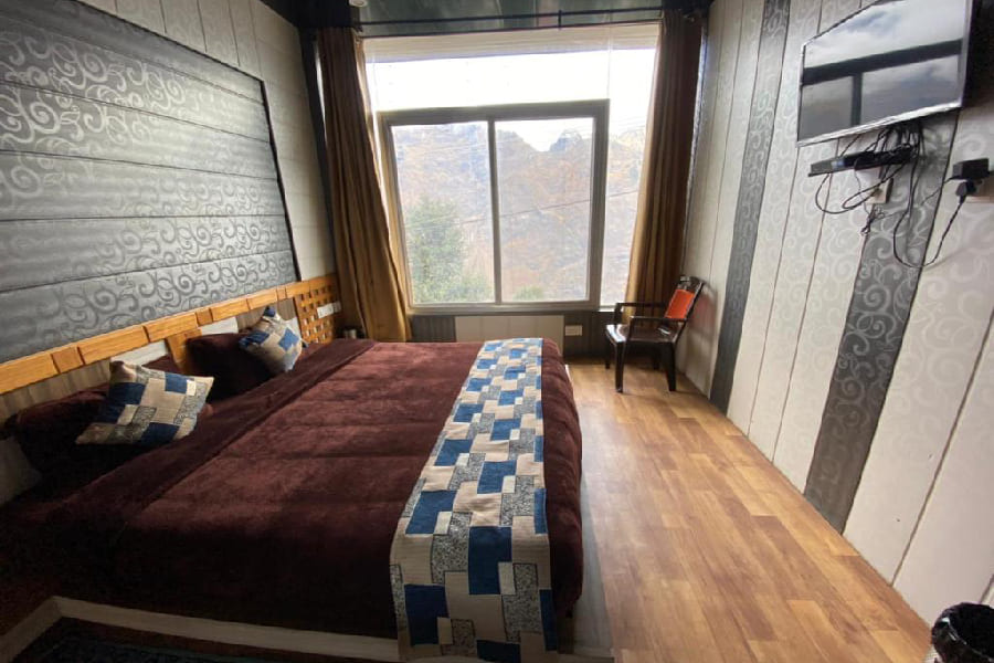 The Deluxe Room at The Sleeping Beauty Hotel offers a perfect blend of elegance, comfort, and modern amenities, designed to make your stay truly memorable. Spacious and tastefully decorated, the room features cozy bedding, warm lighting, and thoughtfully crafted interiors that create a welcoming ambiance. Large windows open up to mesmerizing views of the majestic Himalayan ranges, allowing you to wake up to sun-kissed peaks or unwind under starlit skies. Equipped with essential conveniences like an electric kettle, complimentary Wi-Fi, and a flat-screen television, along with a stylish en-suite bathroom, the Deluxe Room ensures both relaxation and functionality. Ideal for couples, families, or solo travelers seeking a peaceful retreat, this room is your private haven of comfort amidst the beauty of Joshimath.